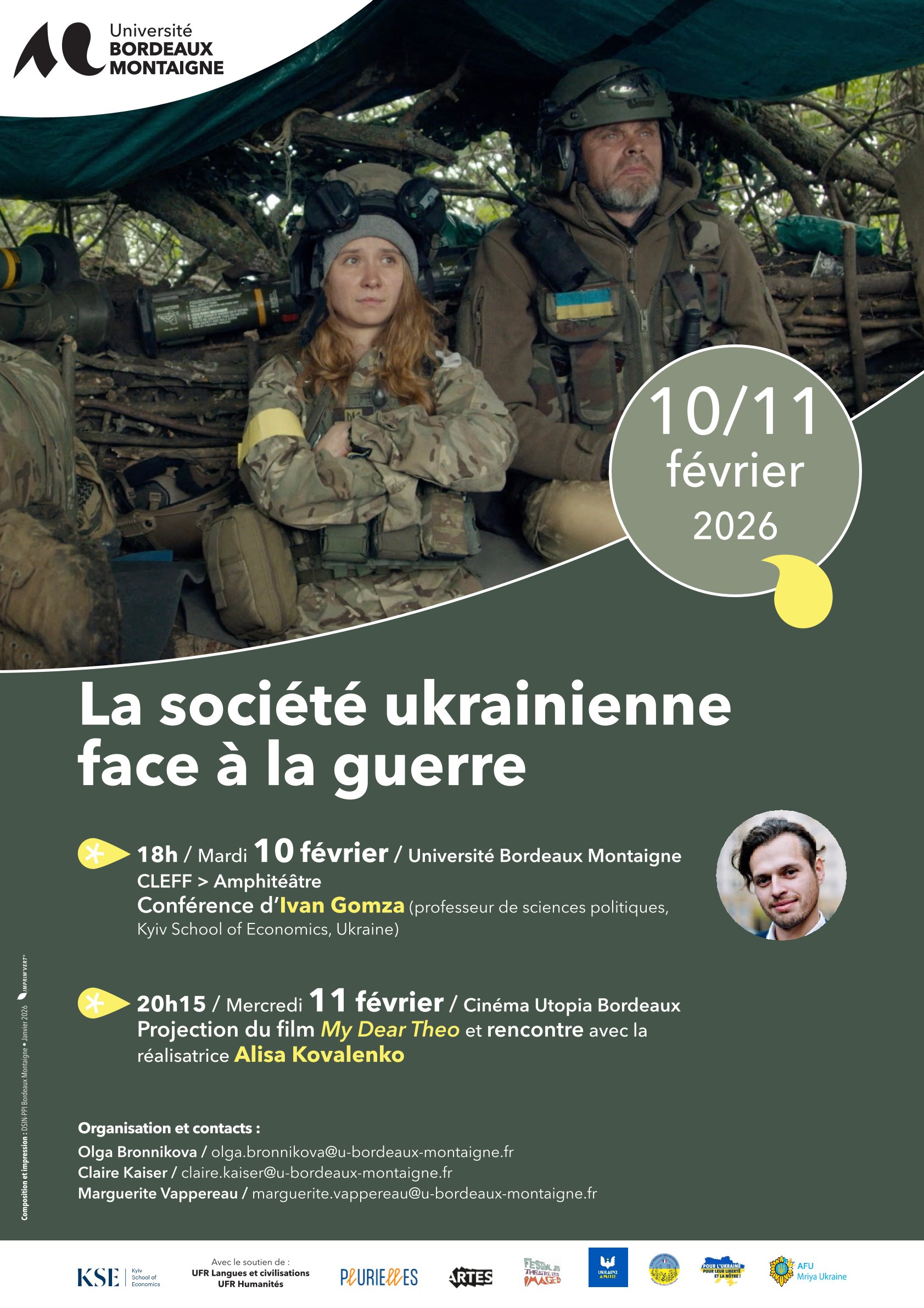 Cette manifestation se compose de deux séances : Mardi 10 février, 18 h, Université Bordeaux Montaigne, CLEFF, Amphitéâtre : Conférence d’Ivan Gomza (professeur de sciences politiques, Kyiv School of...