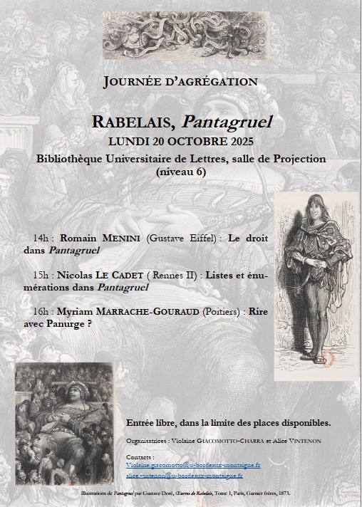 Rabelais, PantagruelLUNDI 20 OCTOBRE 2025Bibliothèque Universitaire de Lettres, salle de Projection (niveau 6)...
