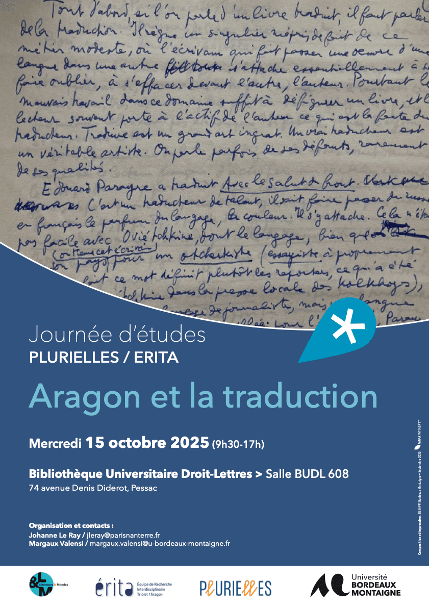 15h30 Stanislas Gauthier (Université Bordeaux Montaigne), « Aragon ou la dialectique de la traduction ».