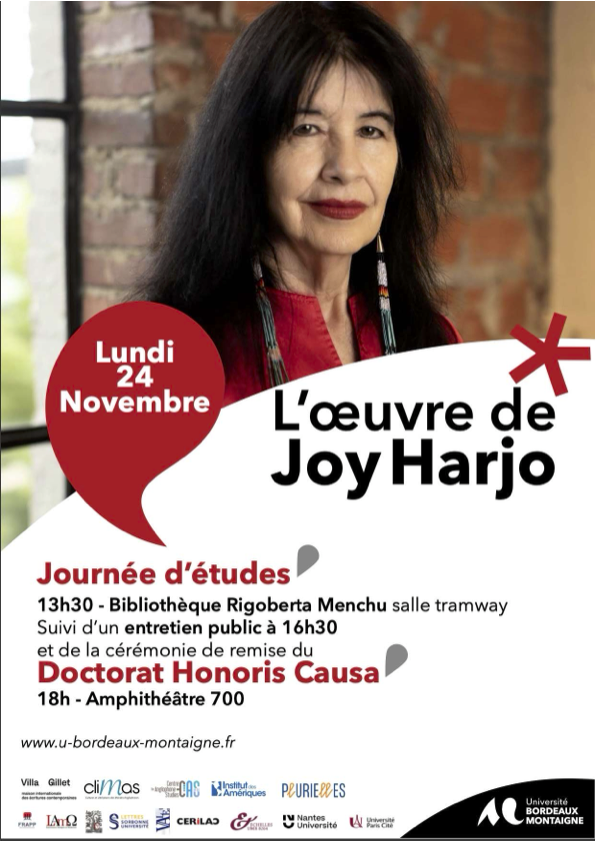 14 h 30-15 h : Anne Pélabon (Université de Toulouse Jean Jaurès, CAS), « Chanter avec l'Histoire dans l'œuvre de Joy Harjo »